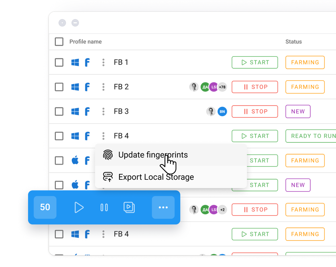 Try for Win/MacOSManage groups of profiles instantly through mass actions